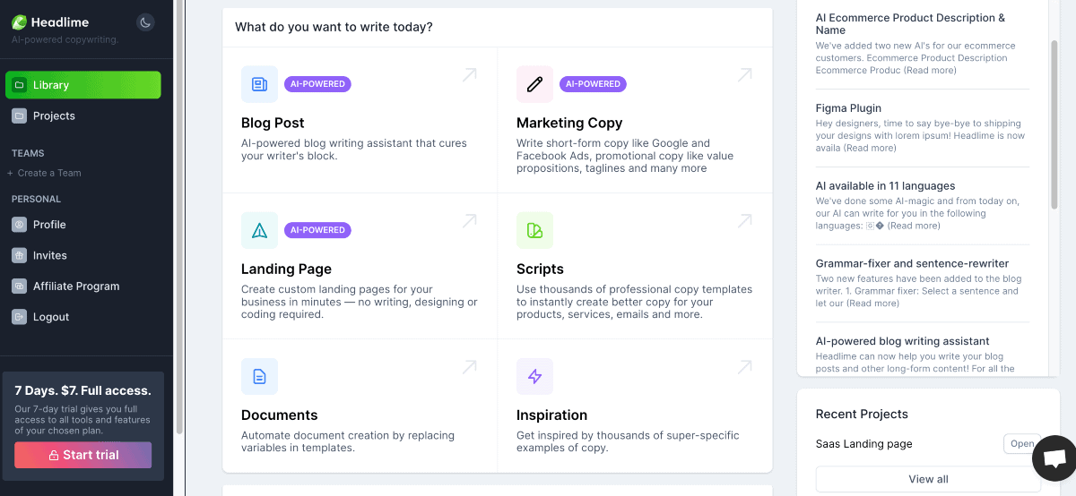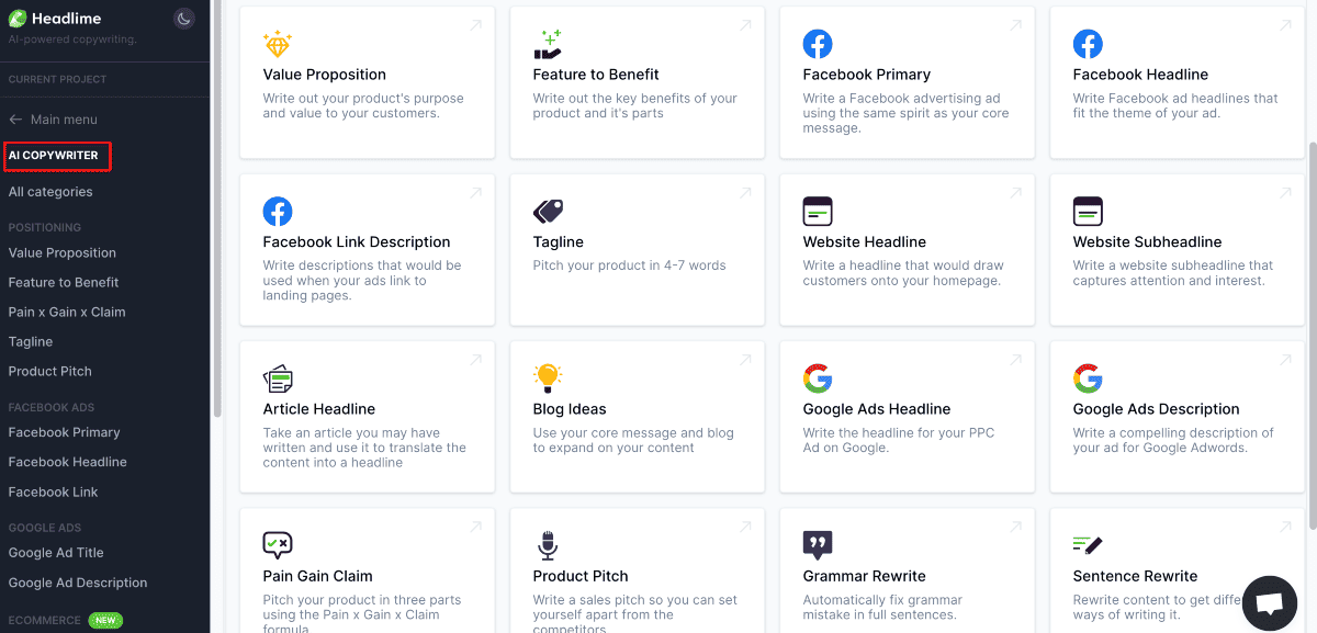 It leverages artificial intelligence and natural language processing (NLP) to create attention-grabbing content. Headlime is famous for generating attractive headlines, copy, and content ideas. The generated content helps drive conversions and enhance marketing efforts.