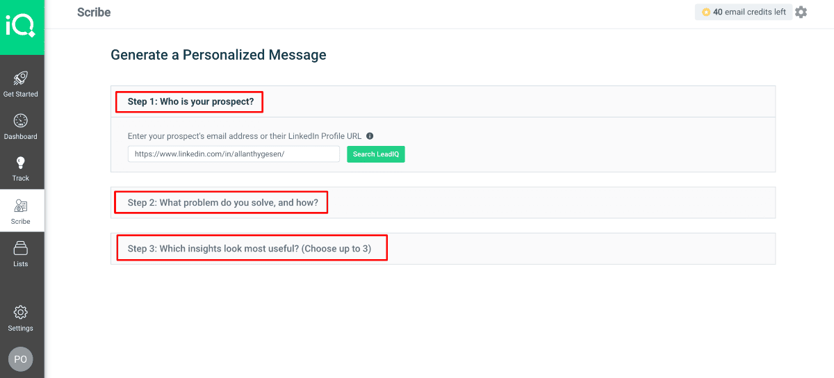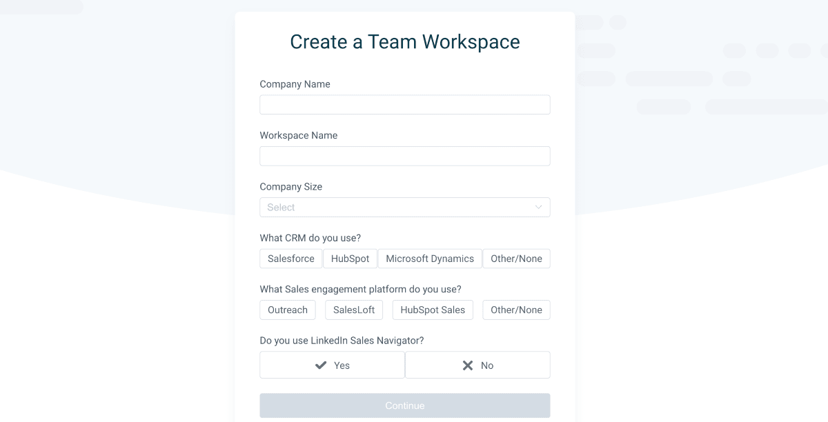 LeadIQ generates leads for you, but for this, it will ask you a few questions to create a team workspace.