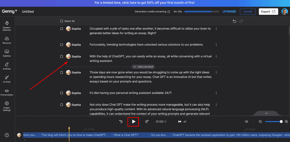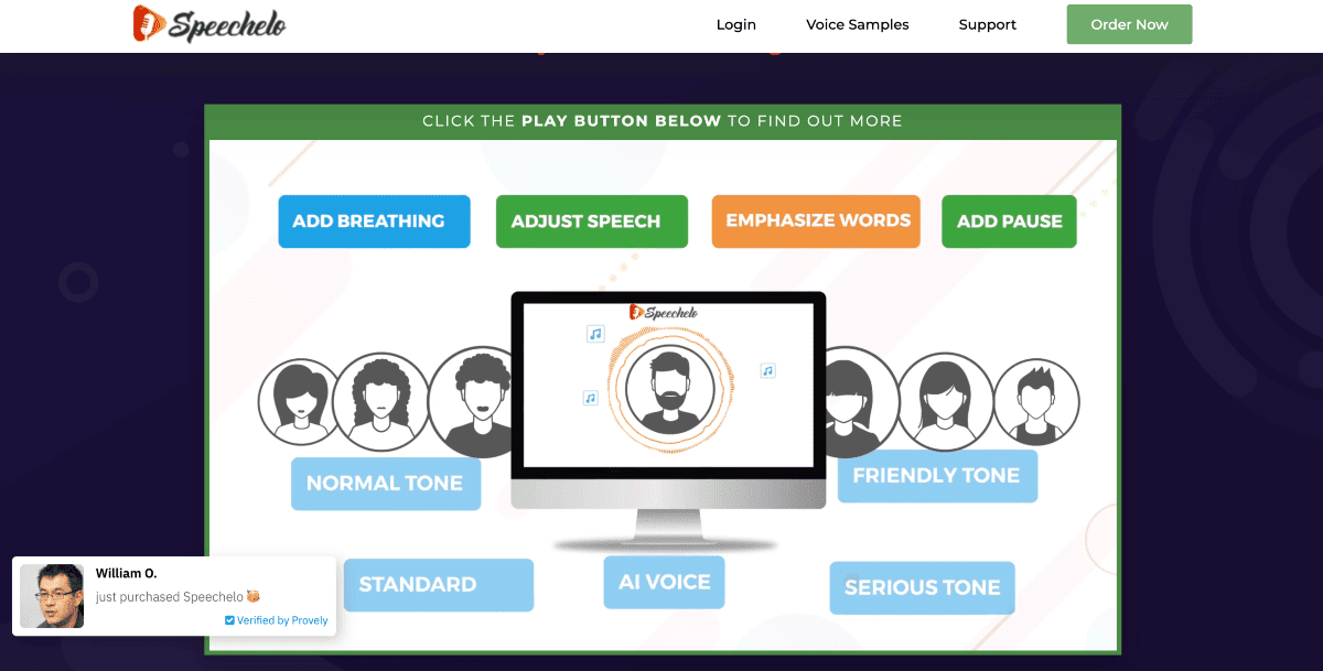 Speechelo allows users to select the tone for reading the text. Furthermore, it is easy to use and can convert text into a voiceover in only three steps.