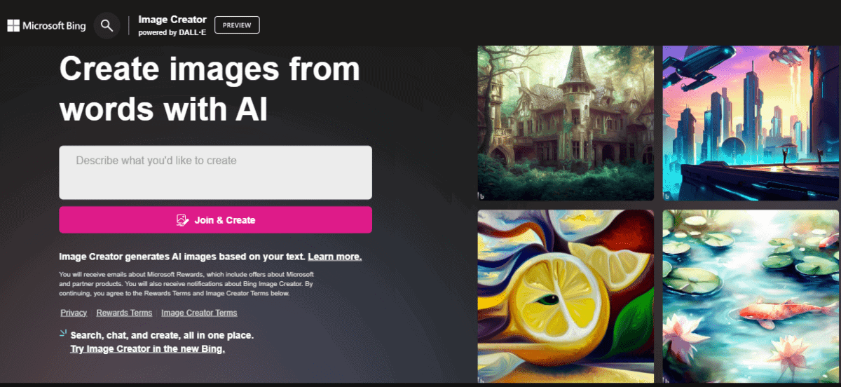 Bing Image Creator is a newly launched AI-based image generator tool that is integrated into Bing and Microsoft Edge. It utilizes an advanced version of the DALL∙E model from Microsoft's partners at OpenAI.