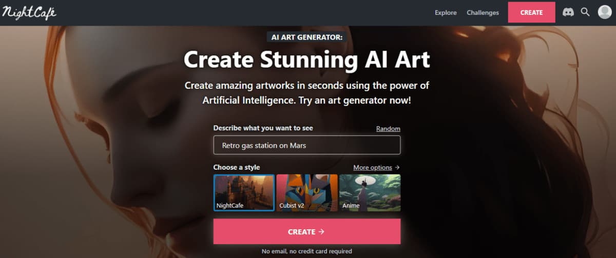 With NightCafe, you can create authentic and creative images with simple words, and it's straightforward to use, making it beginner-friendly.