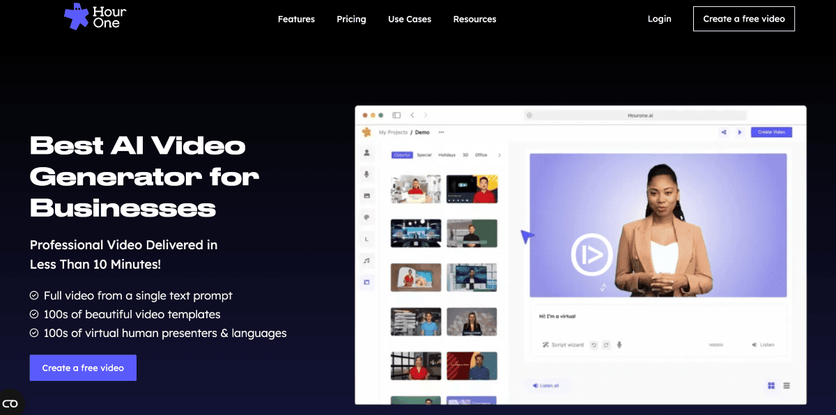 - HourOne.ai – HourOne.ai is an innovative AI-powered video generation platform. It revolutionizes how we create professional presenter-led videos.