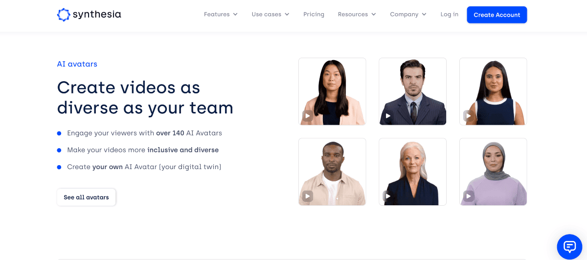 - Synthesia – Synthesia promotes inclusivity and diversity in video production. It allows users to represent various voices, cultures, and perspectives by creating virtual actors.