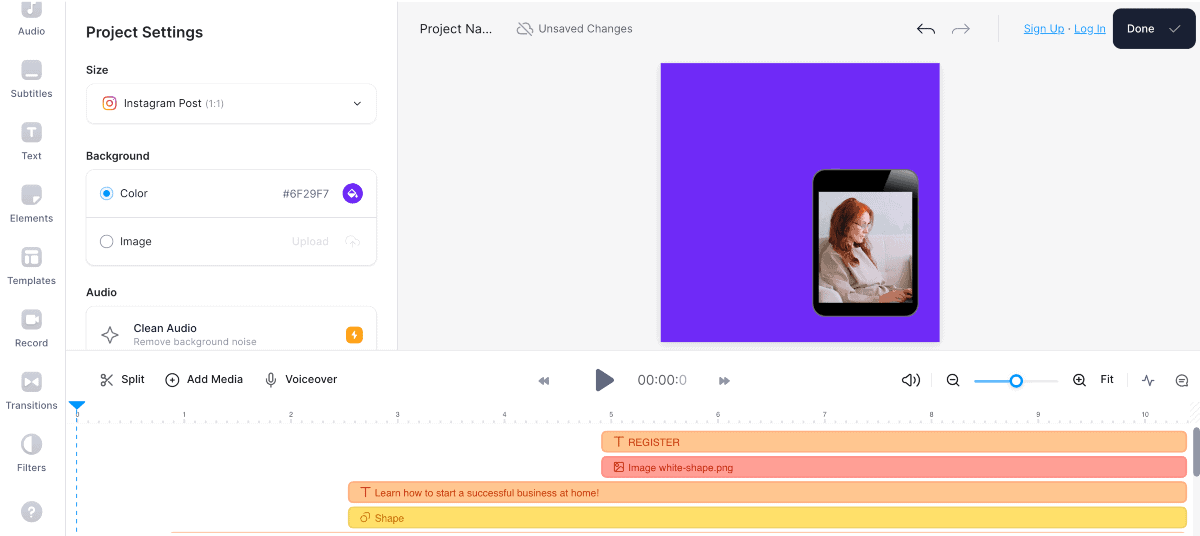 With Veed's AI algorithms, you can automatically generate captions, add subtitles, and enhance the visual quality of your videos. It also offers many templates, effects, and transitions to add a professional touch to your creations.