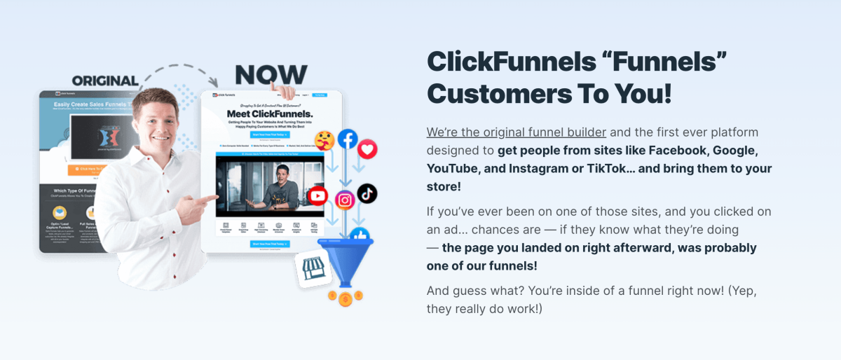ClickFunnels is a software company that simplifies the process of creating sales funnels for entrepreneurs. It helps digital marketers improve the e-commerce aspects of their business online.