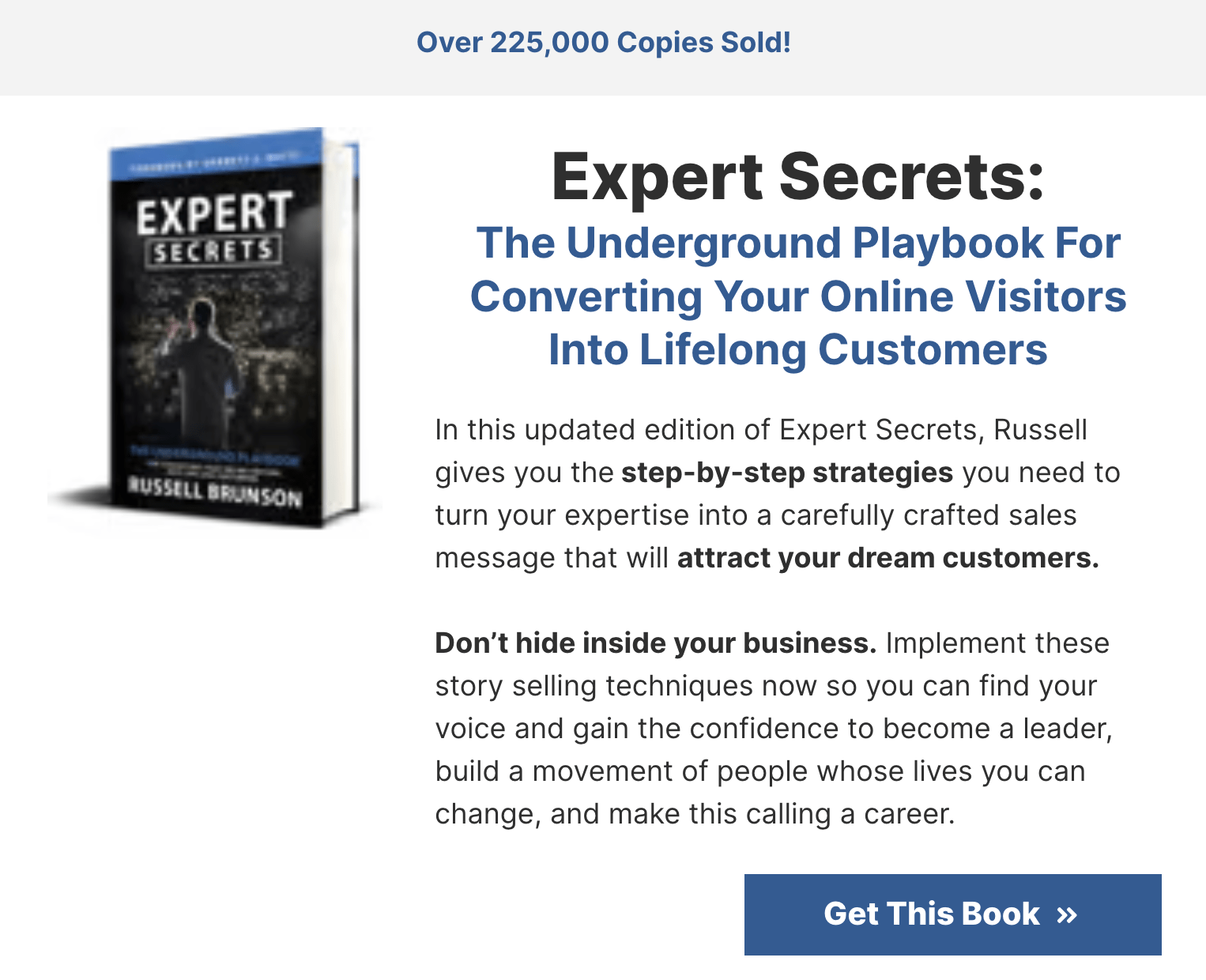 Experts Secret as published in 2017. In his book “Expert Secrets,” Russell Brunson shares insights gained over a decade from mentors and personal experiences.