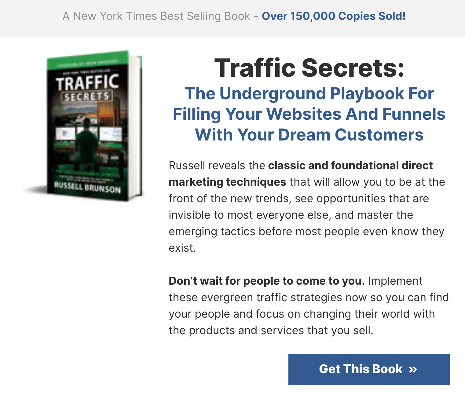 Russell Brunson's other book “Traffic Secrets, was launched in 2020. In this book, he tells how to tackle the challenge of attracting visitors to online platforms head-on.
