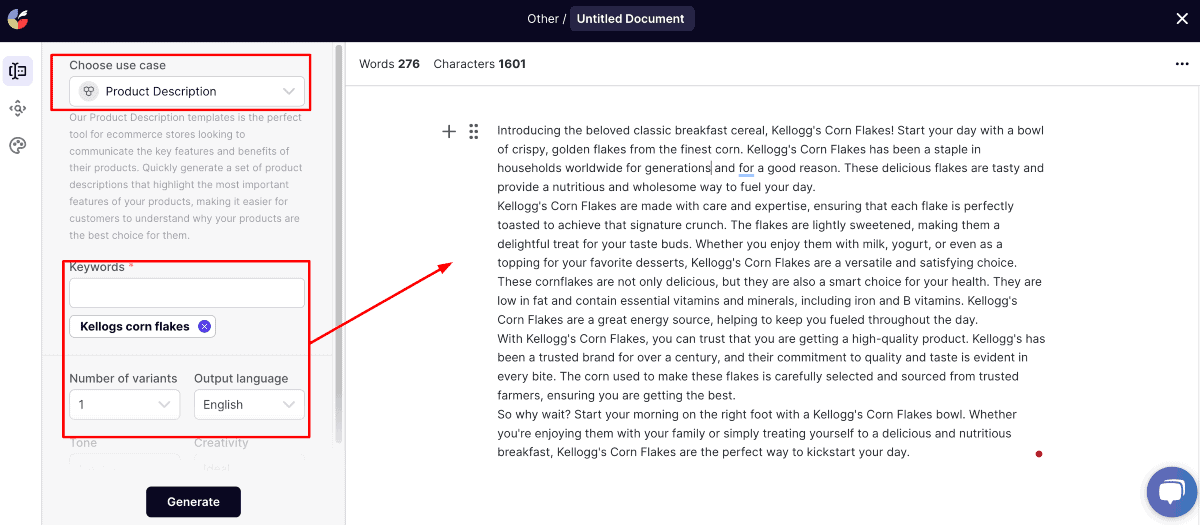 Secondly, I selected the Amazon Product Description template. You can see the result in the image below.