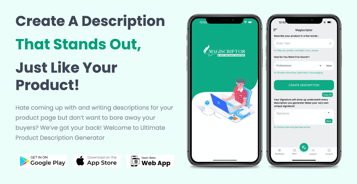 - Magiscriptor is your go-to mobile app for effortlessly creating top-notch and SEO-friendly product descriptions.