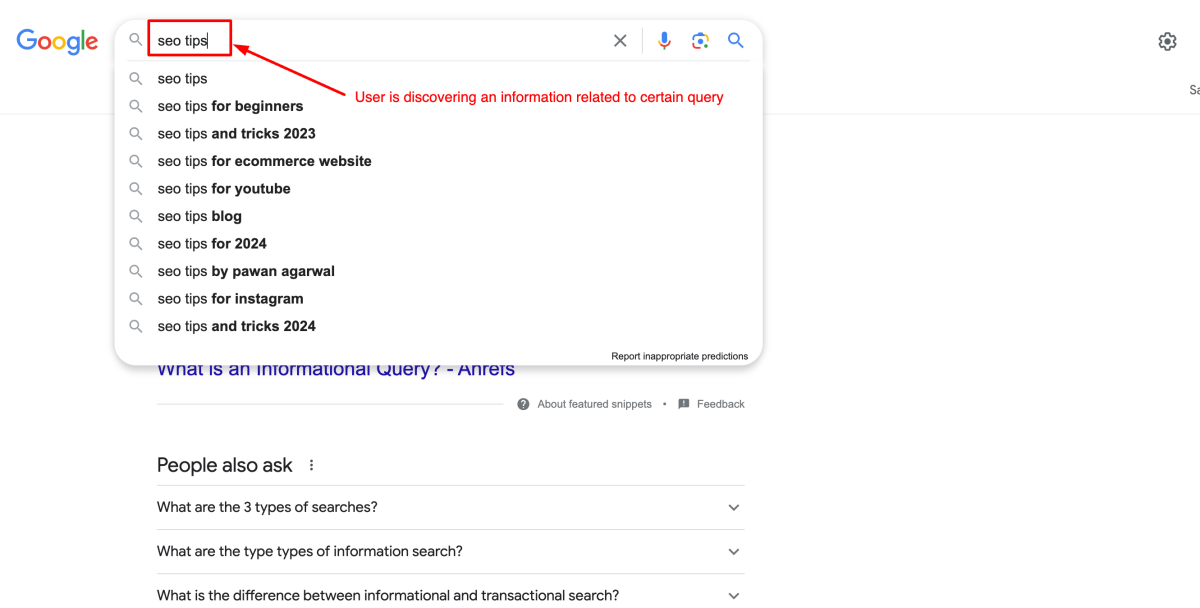 Users seek knowledge without a direct intention to make a purchase. Keyword optimization for these searches involves providing valuable information.