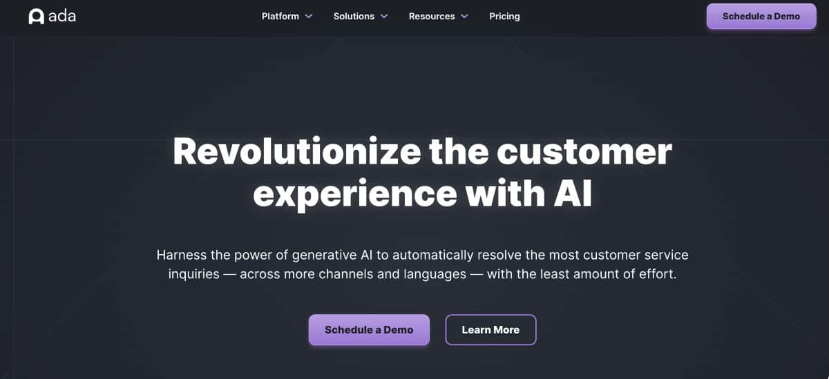 - Ada – Ada is an AI chatbot platform that leverages generative AI to resolve customer service inquiries. It enables businesses to deliver efficient and effective customer service experiences.