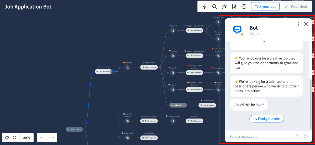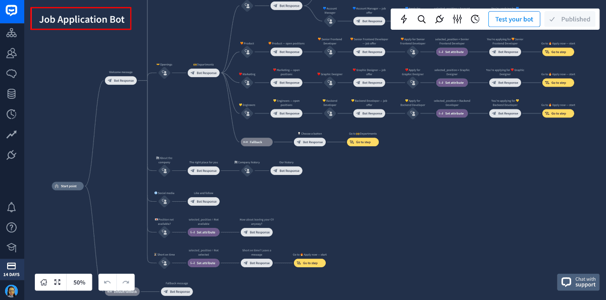 With a visual chatbot builder, companies can create conversational flows. They can define automated responses based on various user inputs. This flexibility enables businesses to tailor the chatbot's behavior. Hence responses to meet their needs and industry requirements.