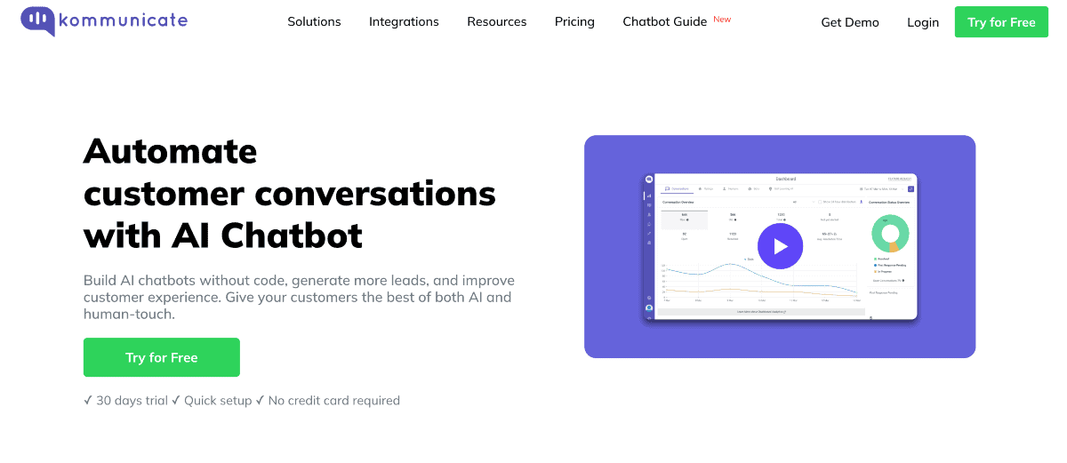 Kommunicate is a versatile AI chatbot platform. It facilitates seamless customer interactions and supports businesses in providing exceptional customer service. It enables businesses to deploy intelligent chatbots and automate customer support processes.