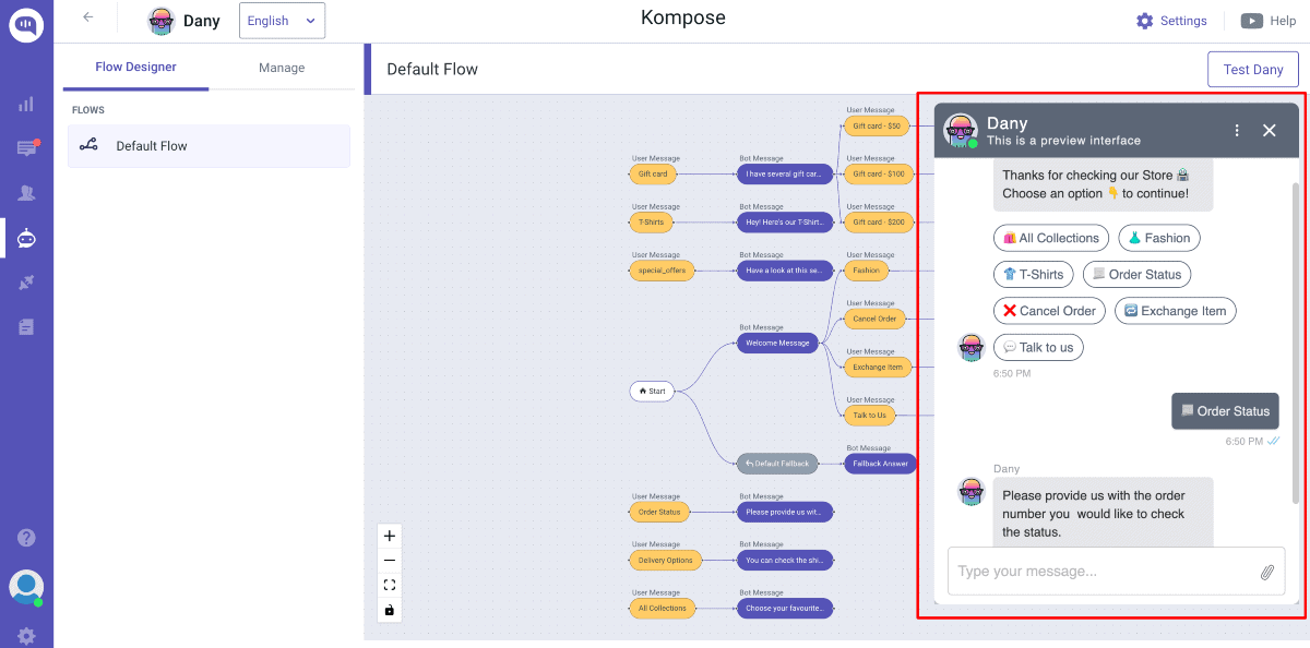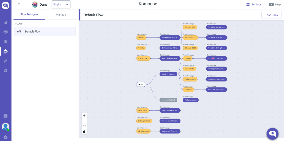 The image below shows how you can create a bot with Kompose, an AI-powered bot builder.