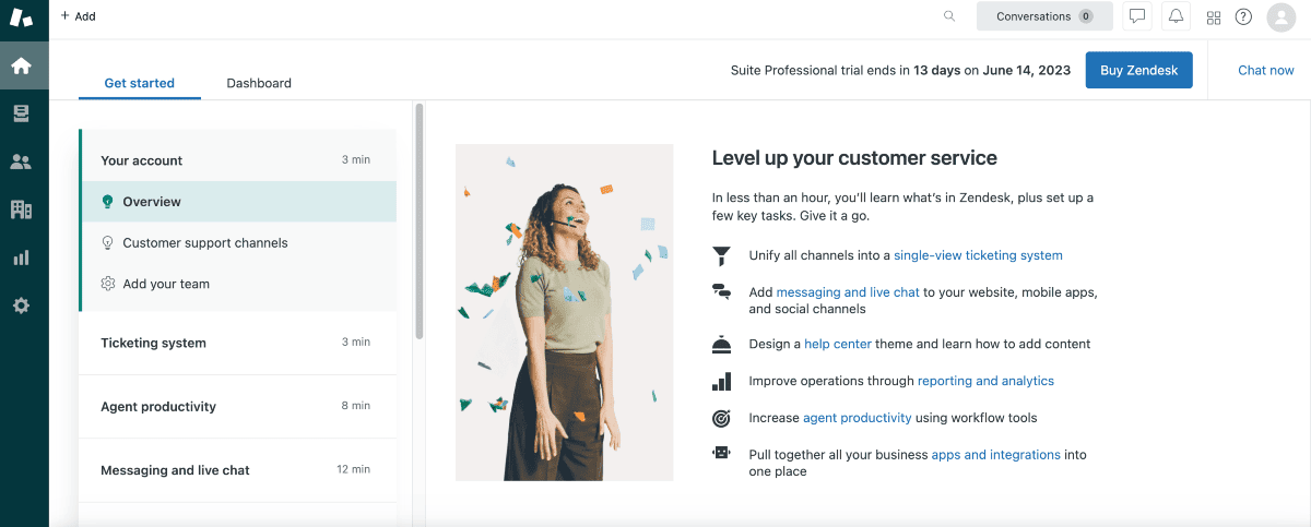 The below image shows the dashboard of Zendesk.