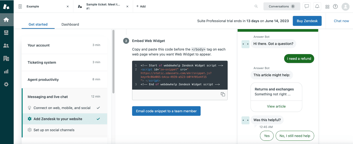 - Zendesk – Zendesk's live chat platform offers a user-friendly interface and powerful bot-building capabilities. It enables businesses to give personalized and efficient support.