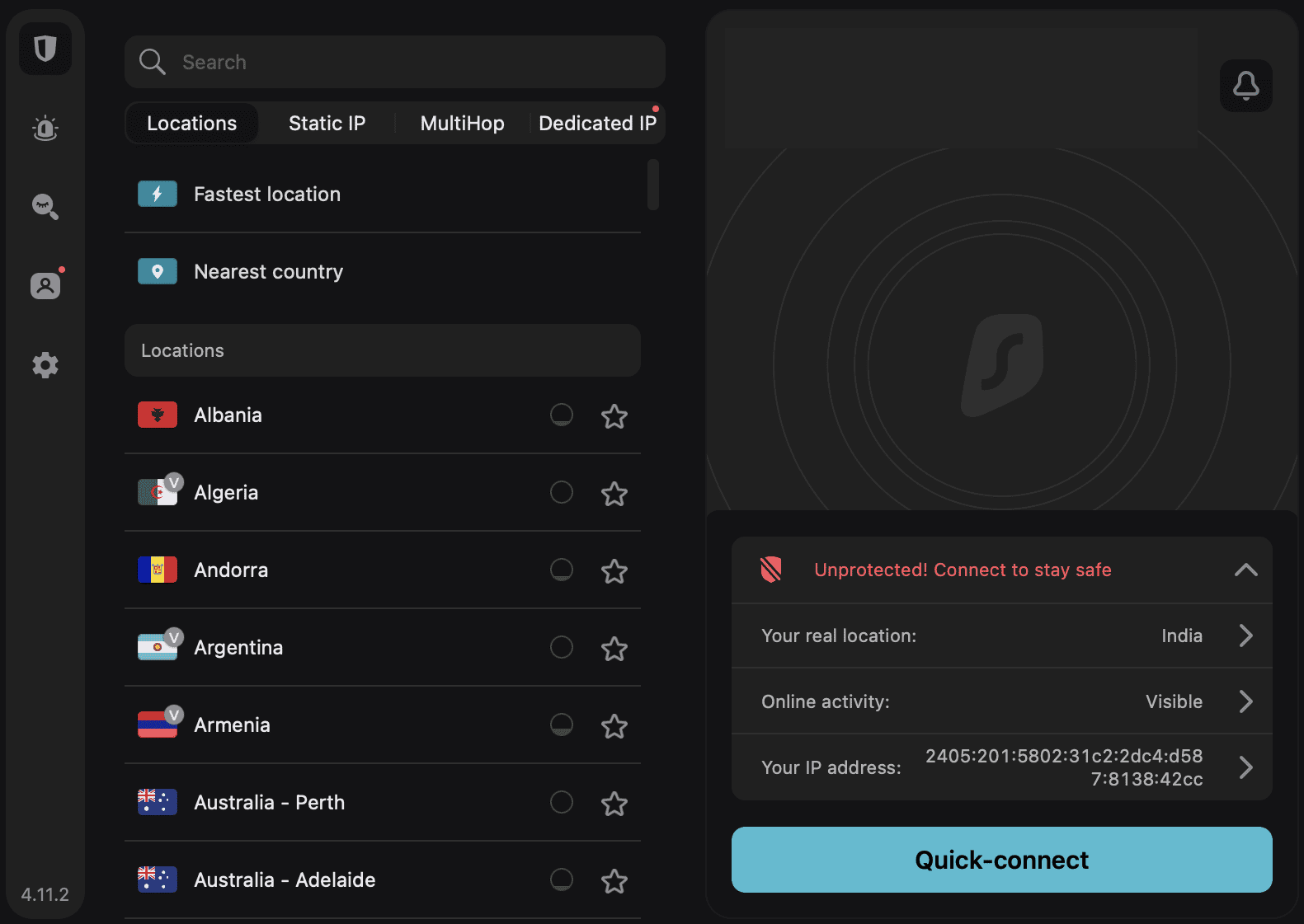 If you have numerous devices to secure, Surfshark is the perfect solution, especially if you're sharing your VPN with family members. The standout feature of Surfshark is its unlimited simultaneous connections. This implies you can protect all your devices at once.