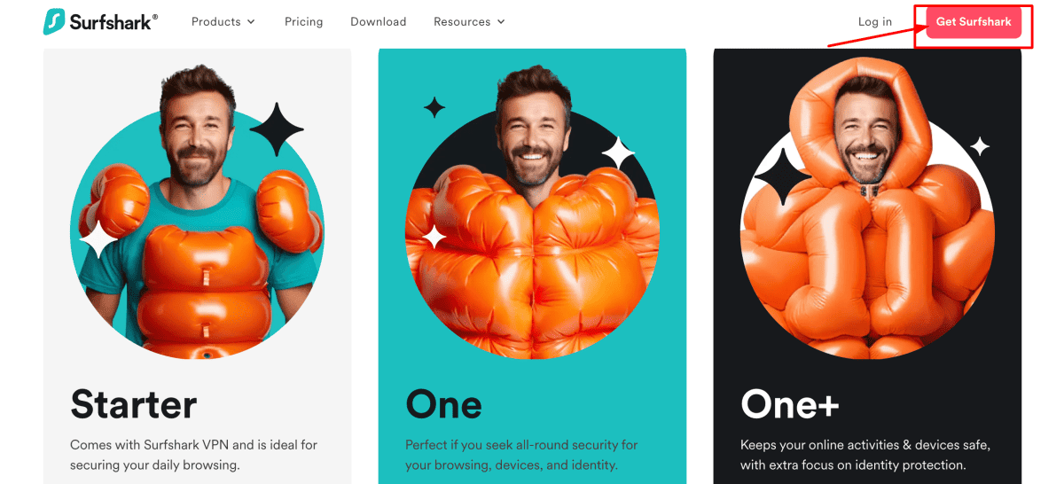 Step 2: Now click on “Get Surfshark.” It's like buying a superhero suit for your computer. So, sign up for Surfshark and get directed to the Subscription Plans page.