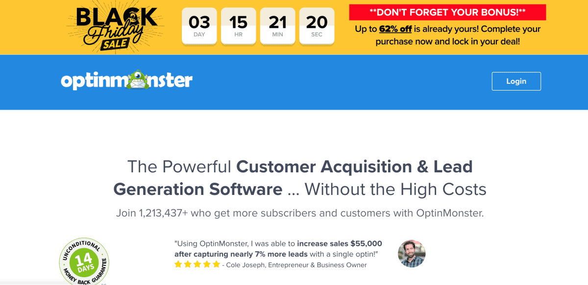 You must not even have a single doubt about the 2026 OptinMonster Black Friday Offer. Apart from the fact that you get a discount of up to 50% on their plans, there's a lot more to consider: –