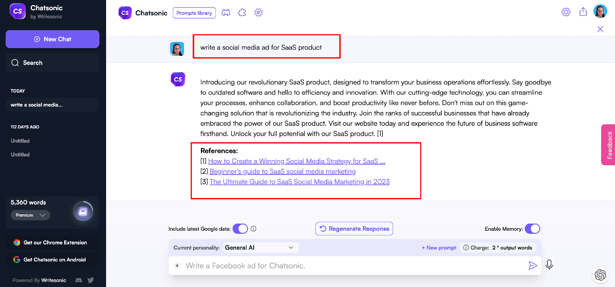 5. ChatSonic