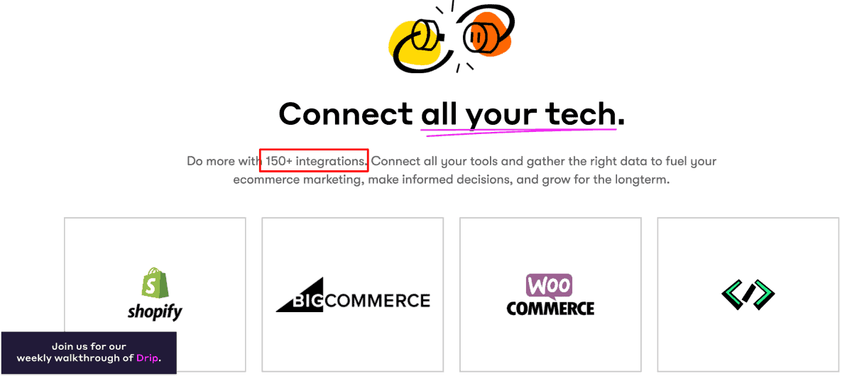 Seamlessly connect Drip with different CRM and e-commerce systems, boosting capabilities and creating a more efficient workflow.