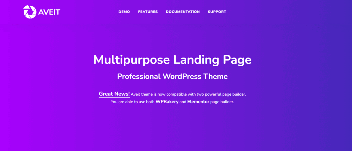 Aveit Landing Page WordPress template is also famous due to its versatility.