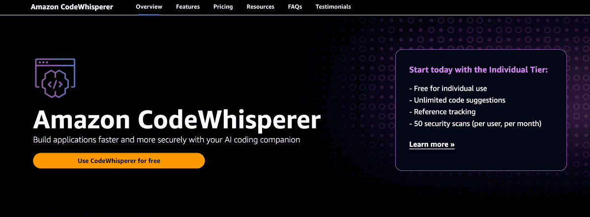 CodeWhisperer is also a unique coding companion that will take your development experience to the next level. This code editor is trained on billions of lines of code and is here to make your life easier.