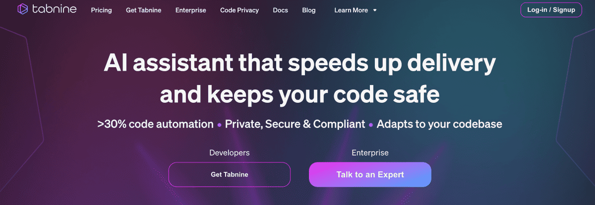 Tabnine is a pro at automation. It saves you over 30% of your coding efforts. It lets you be more productive in less time. Apart from this, Tabnine prioritizes your data's privacy and security. It's private, secure, and fully compliant with industry standards.