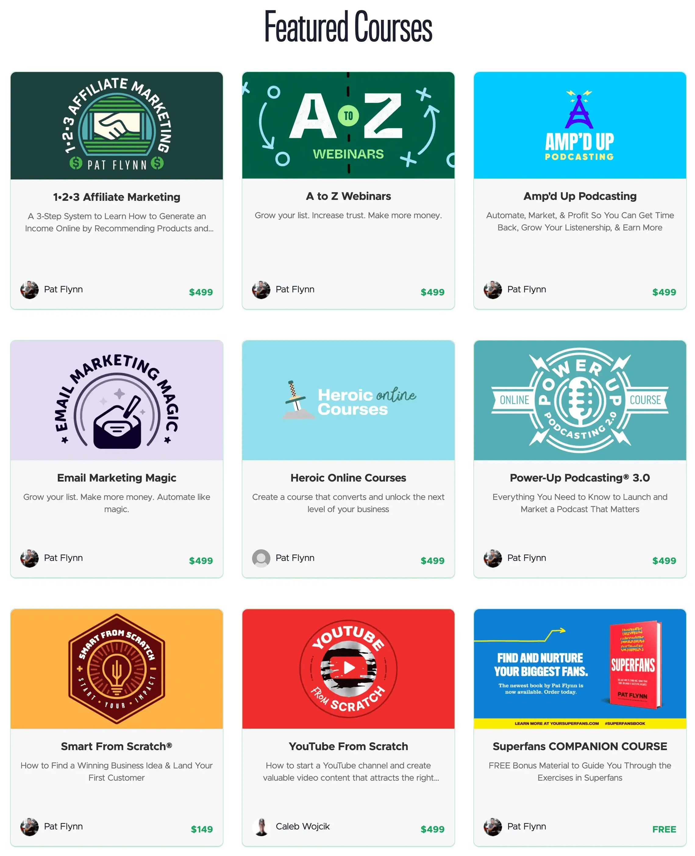 Pat Flynn earns revenue from his online courses. His diverse online courses offer proven strategies for audience and income growth.