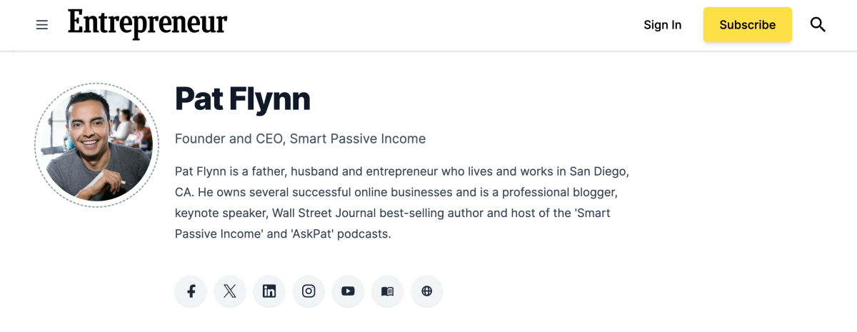 His blog gained immense prominence from the audience. SPI discusses strategies for making a passive income through online marketing. Pat emphasizes the importance of passive income in his blog, which captivates the audience to follow his insights.