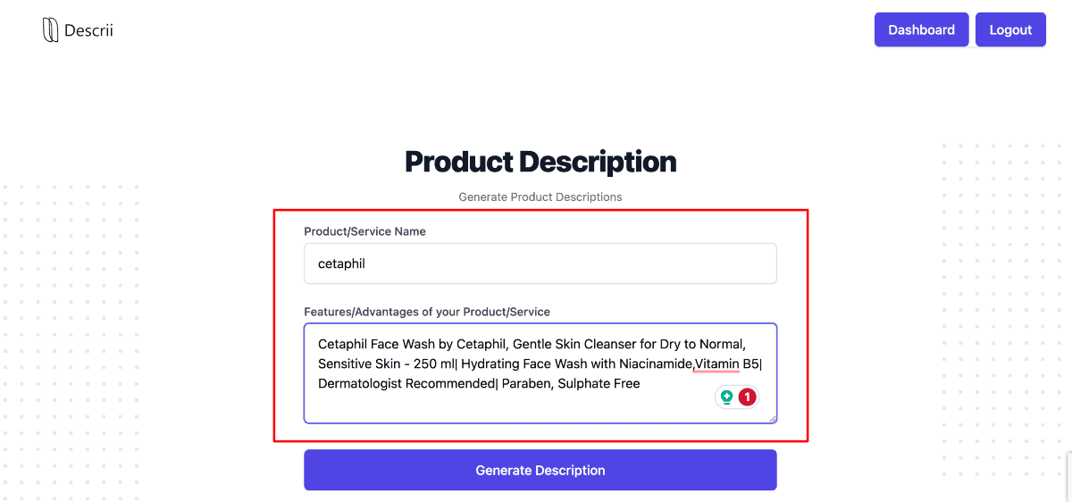 Descrii uses its powerful AI magic to whip up high-quality, SEO-friendly, and persuasive descriptions for your products in just a snap. Now, no more stressing over writer's block or worrying about consistency across your catalog.