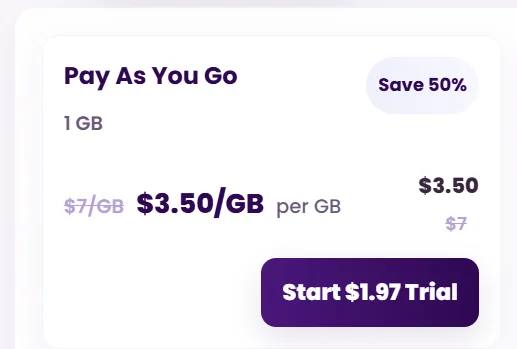 - $1.97 trial is the cheapest real proxy test from any major provider
