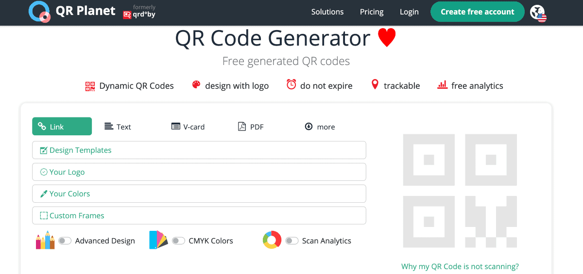 Static QR codes can be generated for free. However, opting for the paid program unlocks dynamic QR codes, QR tracking, and device information of the scanner.