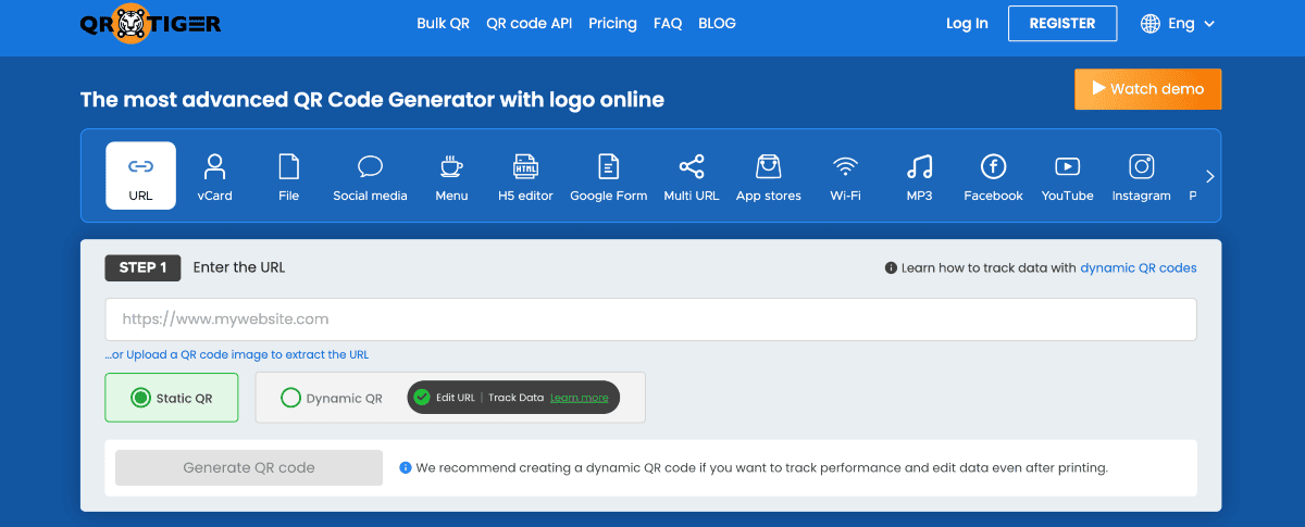 - QR TIGER – QR TIGER stands out as one of the fantastic QR code generators in the market. It is a custom QR code generator that offers multiple customization options.