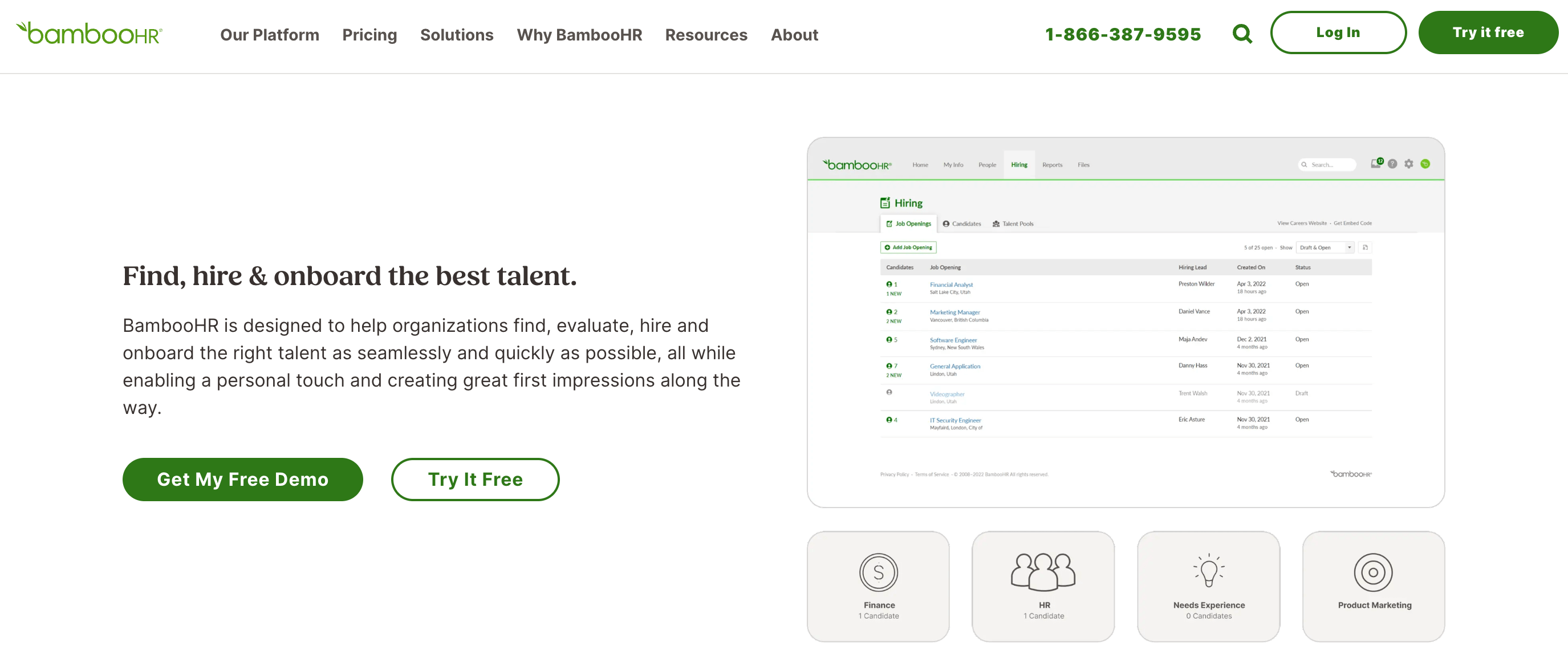 BambooHR offers collaborative hiring and onboarding tools. It thereby streamlines the process of finding, evaluating, hiring, and onboarding the right talent.