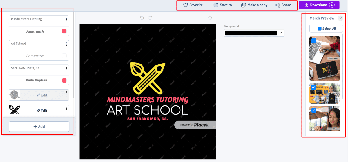 It provides all the tools and resources required to create impressive logos, eliminating the need for multiple software or design services.