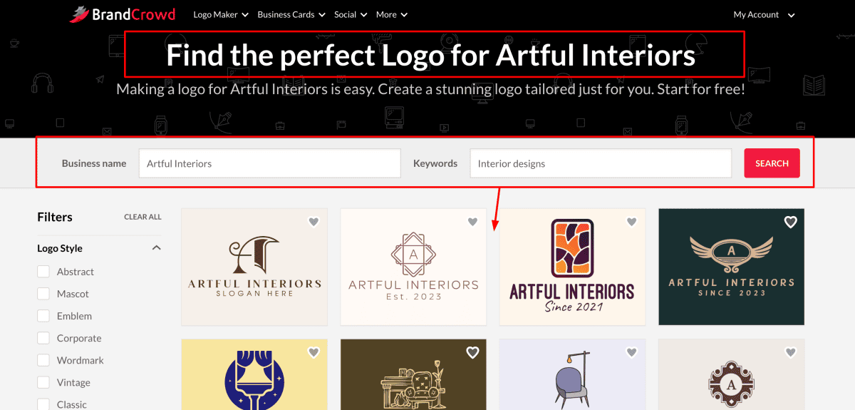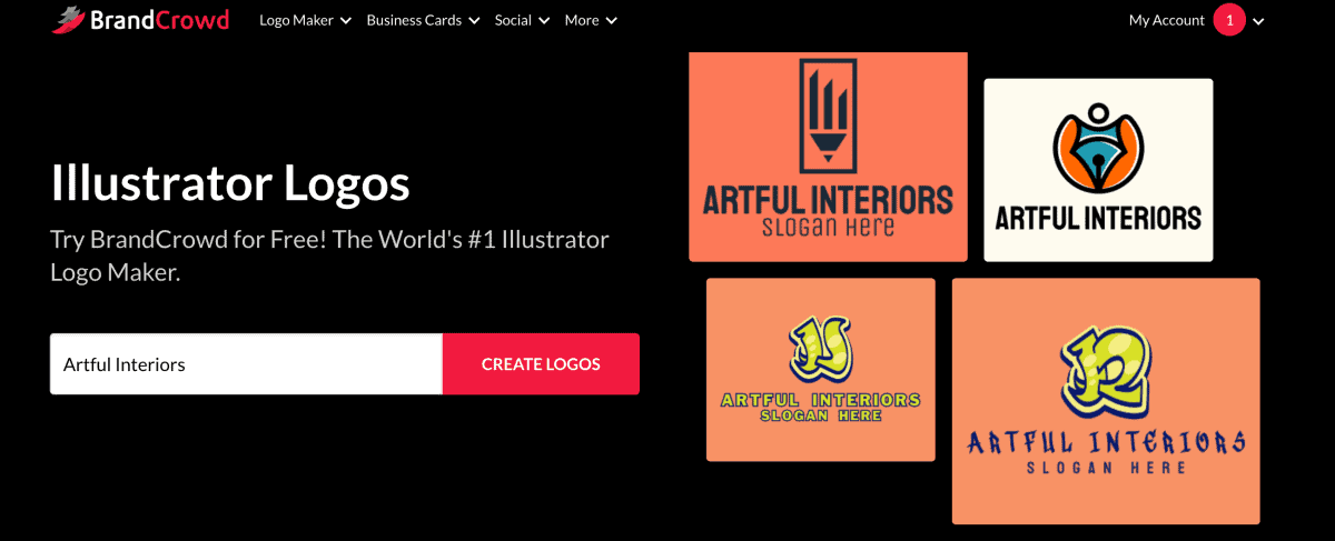 Whether you're into creativity, graffiti, pop culture, or anything else, you can think of BrandCrowd for logo design. You have to enter some keywords and explore a world of illustration-heavy free logos that'll rock your branding game.