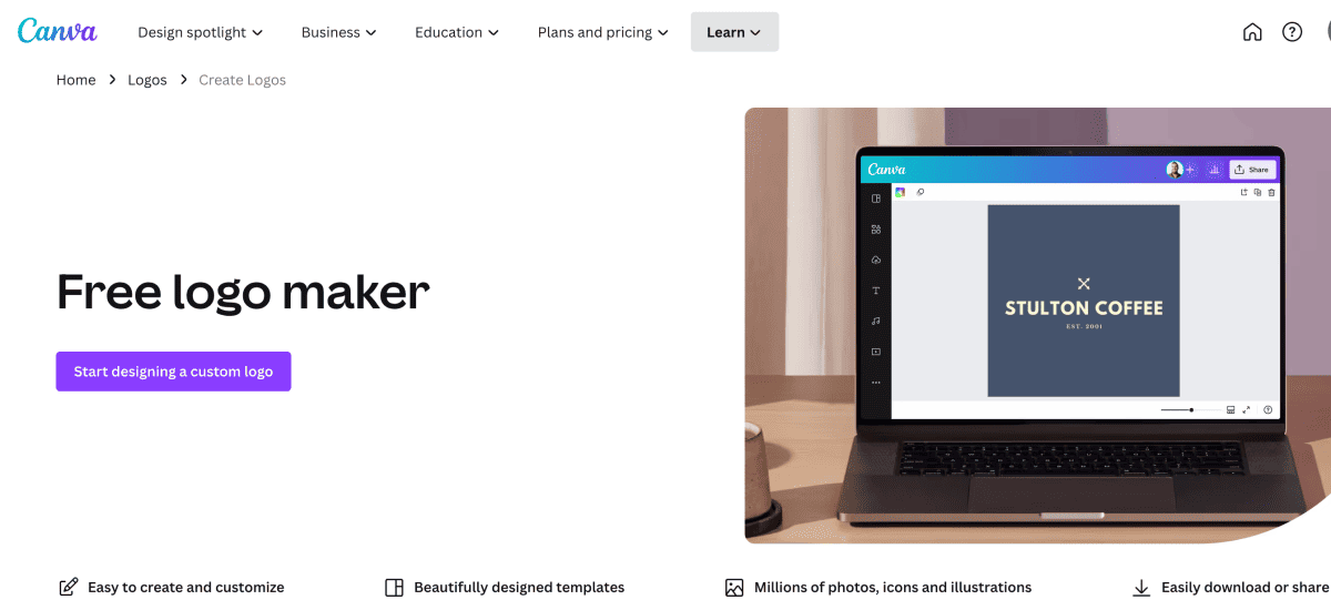 Canva's logo maker is a user-friendly and accessible tool that aims to simplify the logo design process. The tool ensures that designing a logo is a manageable task for you. The platform offers many features and resources to help you create custom logos quickly and free of charge.