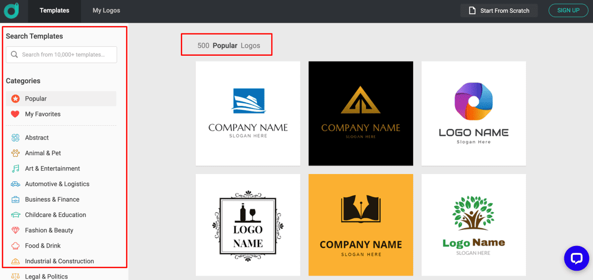 The platform offers a vast collection of pre-designed logo templates. It gives you plenty of options to kickstart your logo design process.