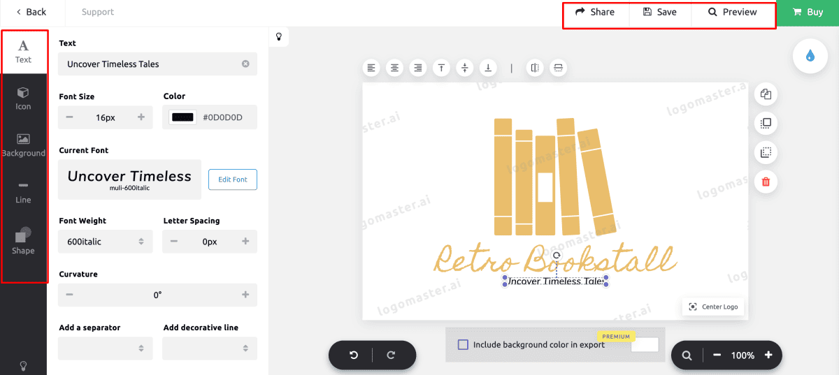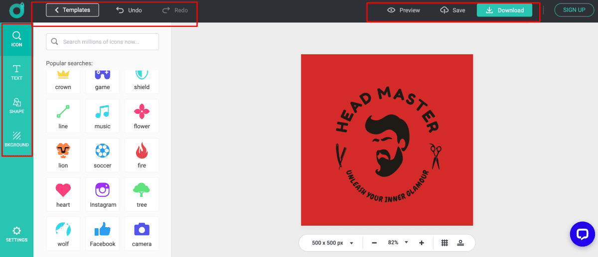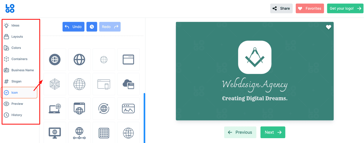 The logo maker is like a treasure trove for logo creators. They've got icons, fonts, shapes, and colors to play with. Hence, their vast array of resources will help you take your logo design to the next level.