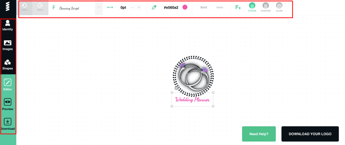 The platform offers all the necessary design ingredients to create a custom logo. It majorly focuses on aligning designs with your brand identity. Hence, it includes an extensive library of icons, illustrations, shapes, and fonts. You can choose the elements to craft a unique and eye-catching logo.