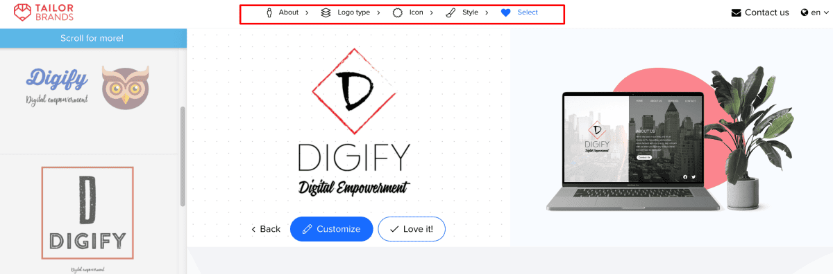 Design.ai Logo Maker lives up to its promise of being smarter, faster, and easier. The platform harnesses the power of AI to streamline the logo design process. The platform possesses a library of over 10,000 icons.