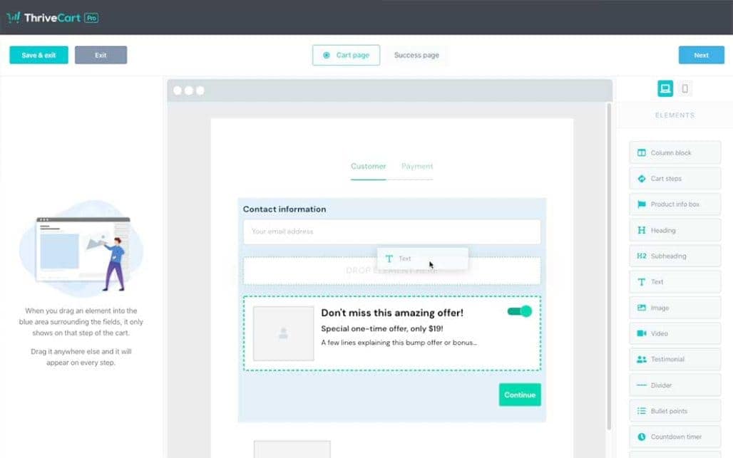 ThriveCart also provides a user-friendly experience with its “Custom Page Building” feature. Users can effortlessly design attractive product, sales, and funnel pages through an intuitive drag-and-drop interface.
